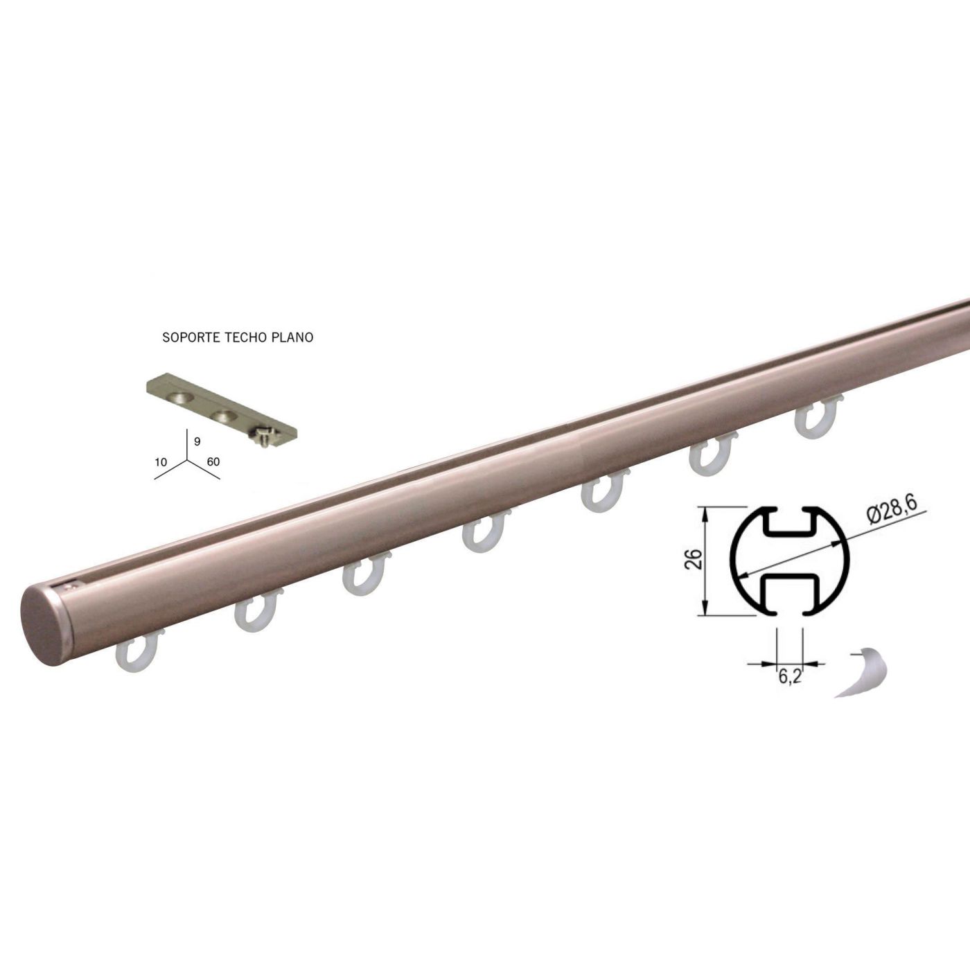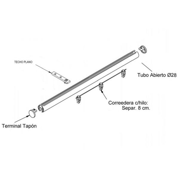 El riel se entrega con todo el material para su colocación