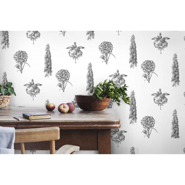 Papel pintado de flores sueltas en gran formato
