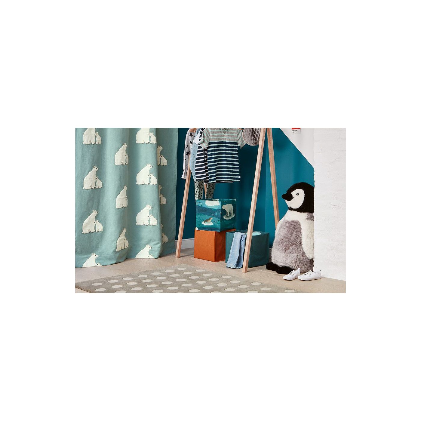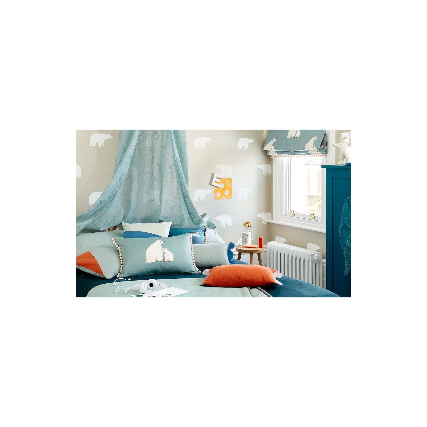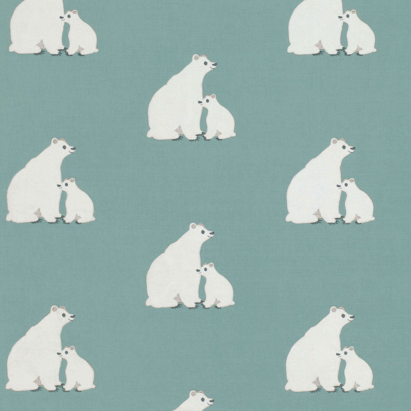 La mami oso polar y su bebé se acurrucan después de un ajetreado día jugando en la nieve. Este motivo conmovedor es bordado e aplicado en lino de algodón suave.