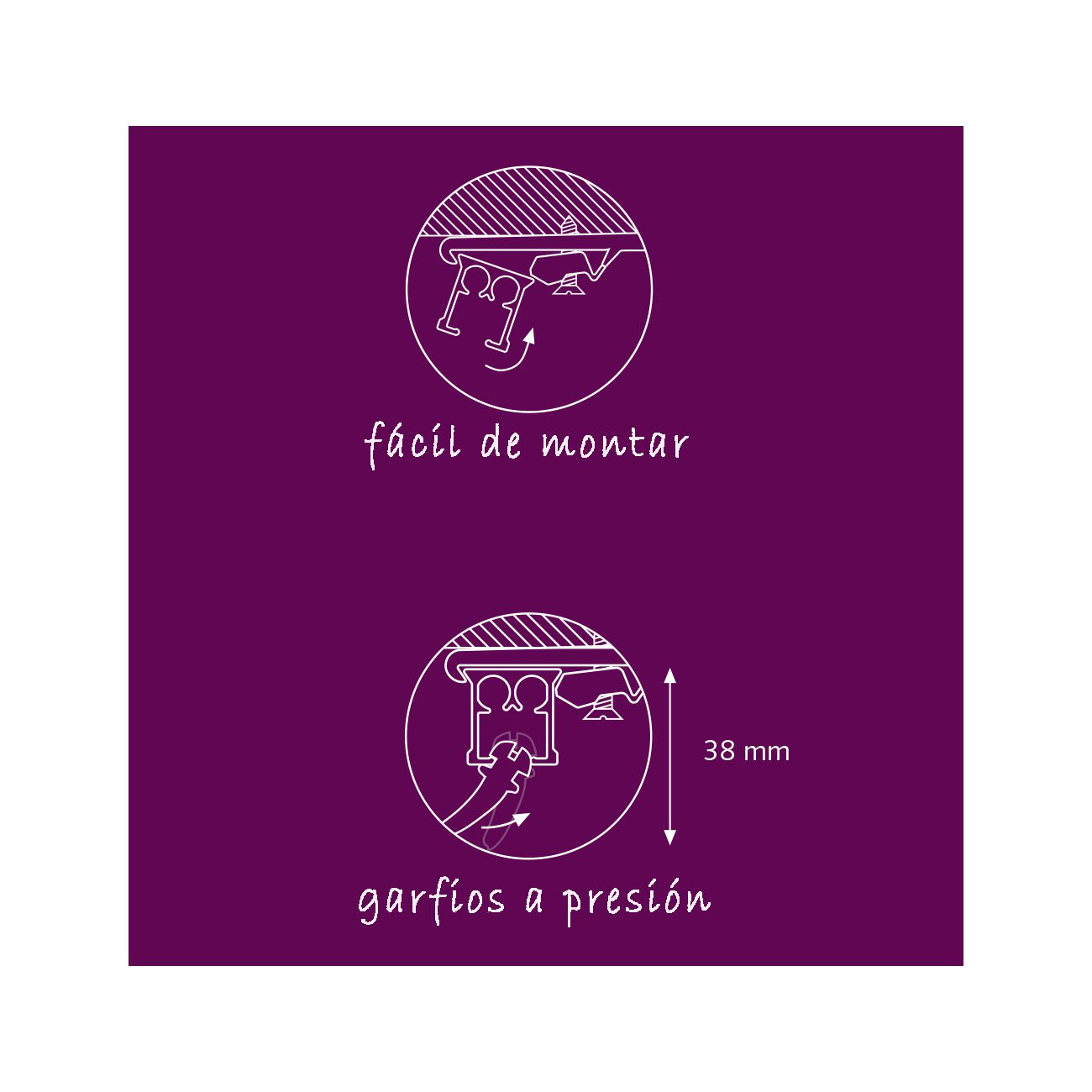 Aluminio lacado, cordón de alta resistencia con deslizamiento interno por canales separados que previenen que cuelgue y se enrede el cordón.