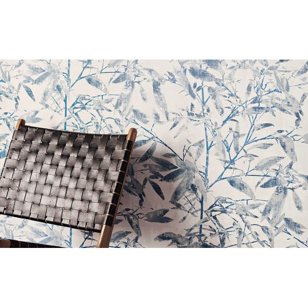 Una escena llamativa de bambú exótico, Sumba combina texturas pictóricas delicadas con toques de metálico sofisticado.