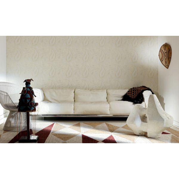 Efecto real de perlas sobre vinilo. Este papel pintado vinilo, como un ensamblaje de perlas, posee el aspecto visual y táctil de este objeto prestigioso.