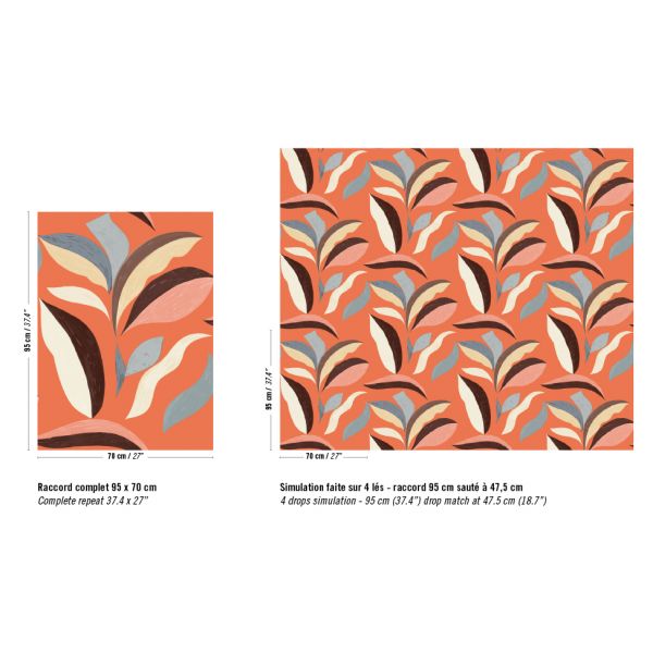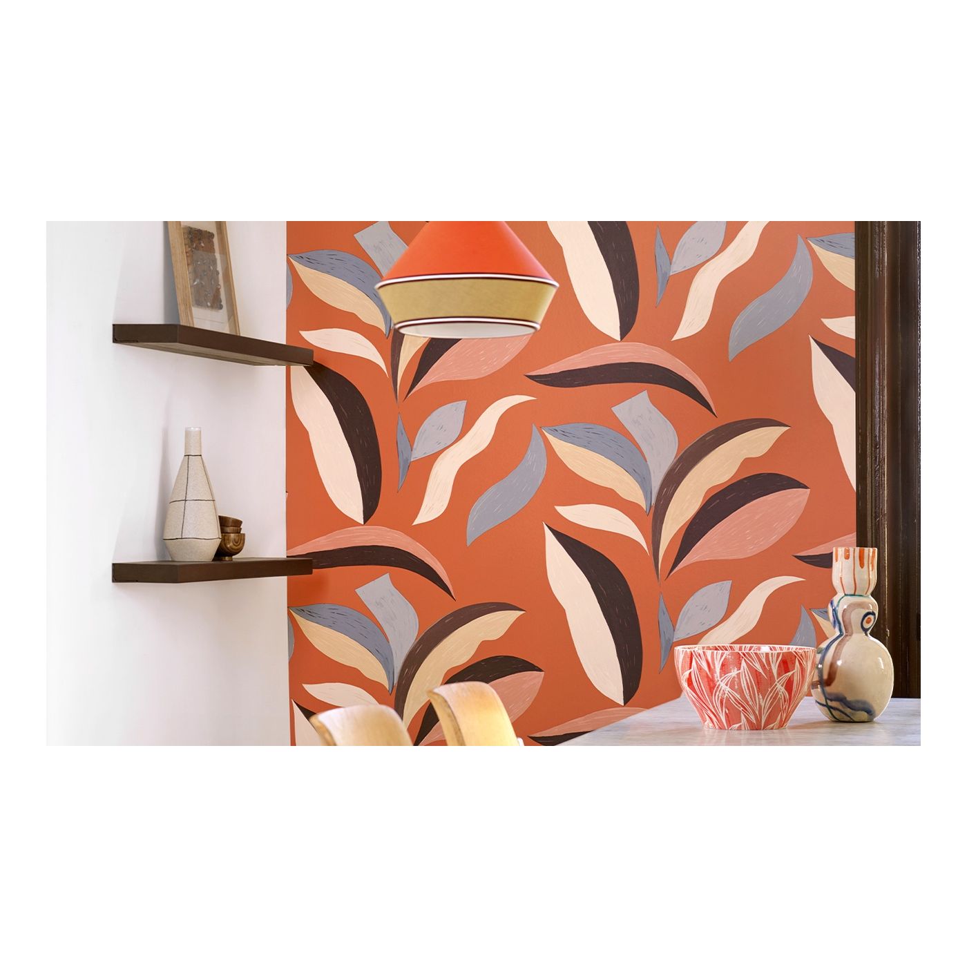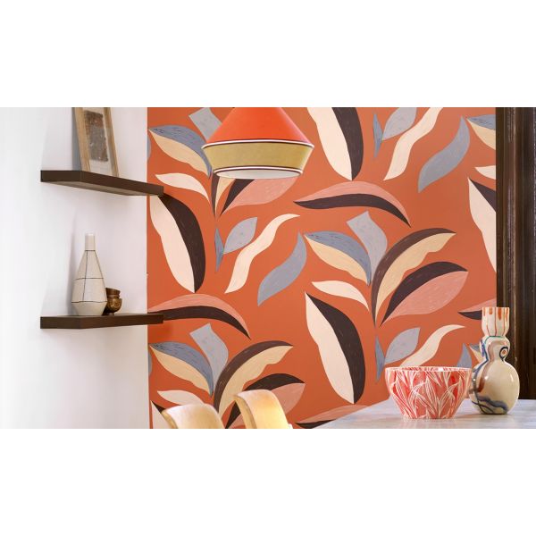 En esta colección de papeles pintados multicolores, se presentan con alegría grandes diseños florales y vegetales.