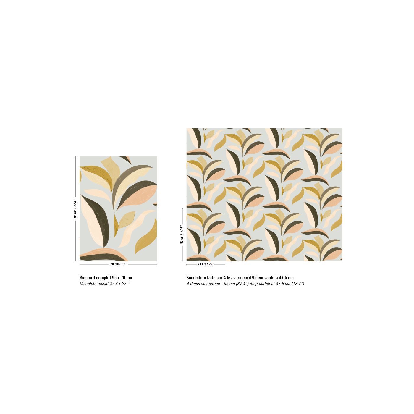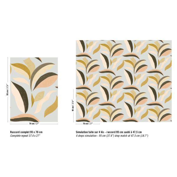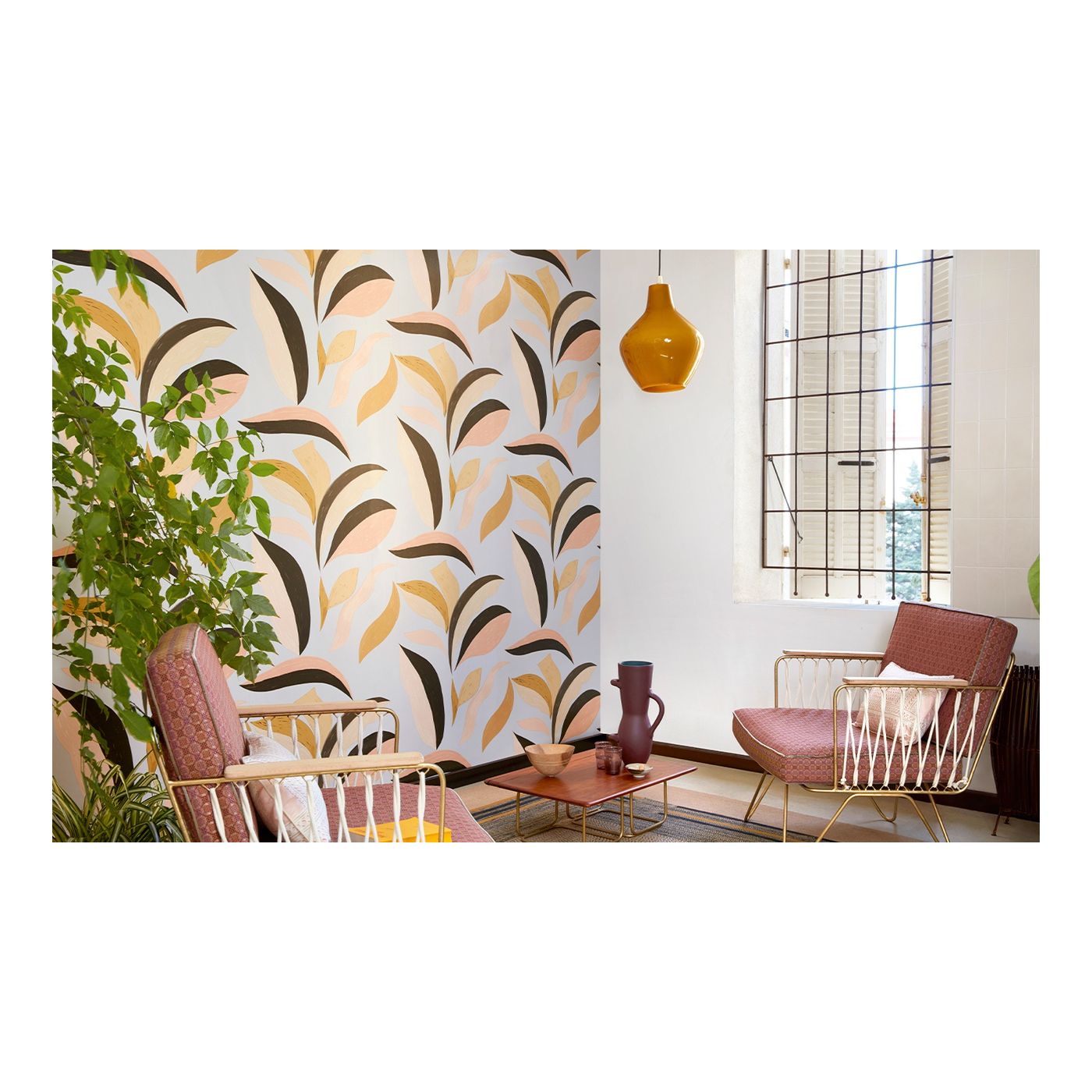 En esta colección de papeles pintados multicolores, se presentan con alegría grandes diseños florales y vegetales.
