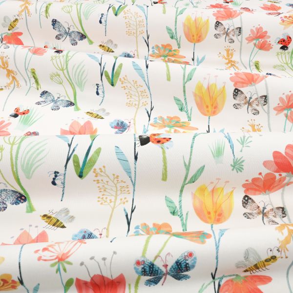 Un estampado fascinante y detallado, lleno de vida. Las mariquitas pictoricistas aletean sus alas de colores vivos a medida que revolotean las mariposas