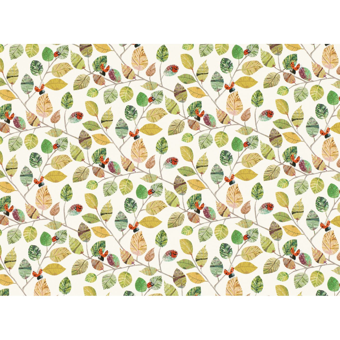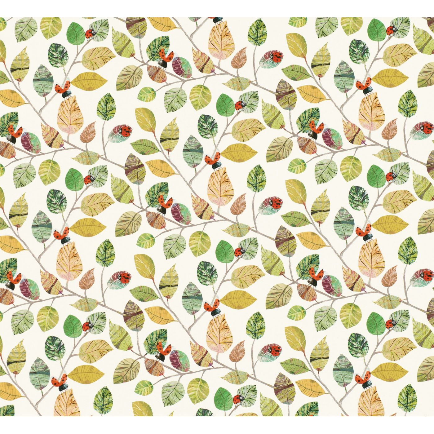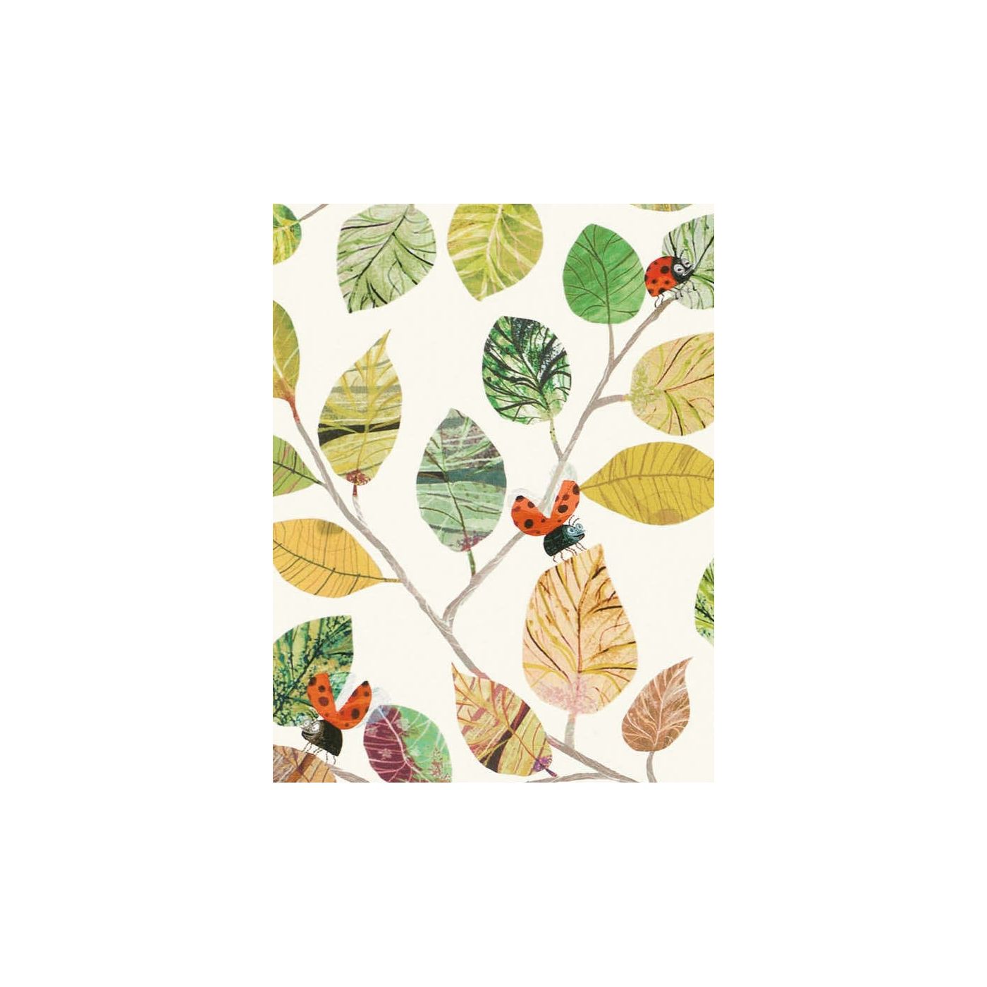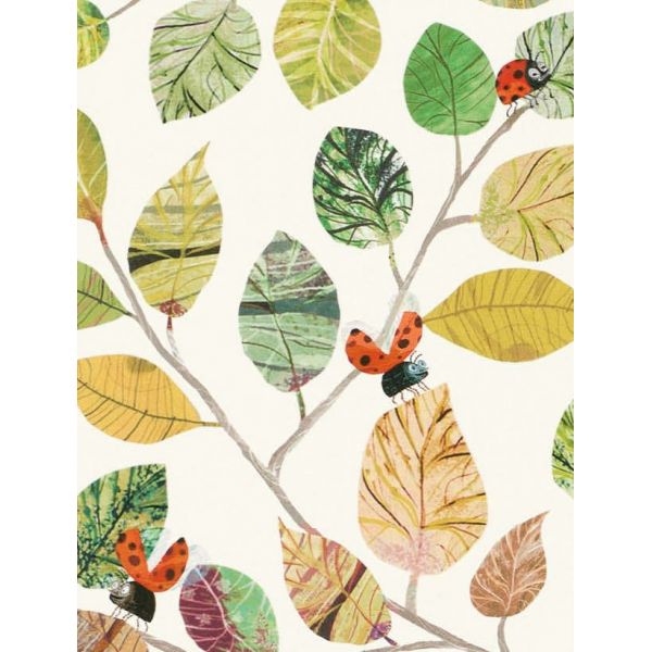 Mariquita, mariquita, veté volando a casa… Sonriendo mariquitas de gran tamaño vuelan entre hojas pictóricas