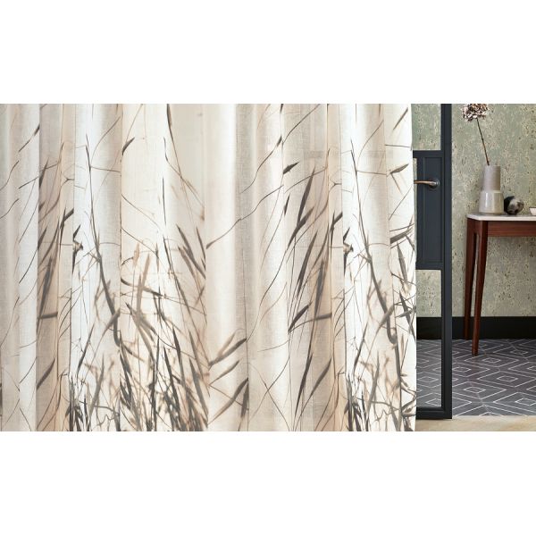 Reminiscente de un jardín japonés, unas hierbas altas emergen del suelo para crear un visillo room high precioso y llamativo. Estampado digital para capturar los elementos intrincados del diseño, Kishi se presenta en tonos inspirados en entornos naturales.