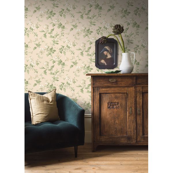 Composiciones magistrales del siglo XIX, nuestro papel pintado Blomslinga es una representación lujosa y relajante de un jardín a la primera luz de la mañana.