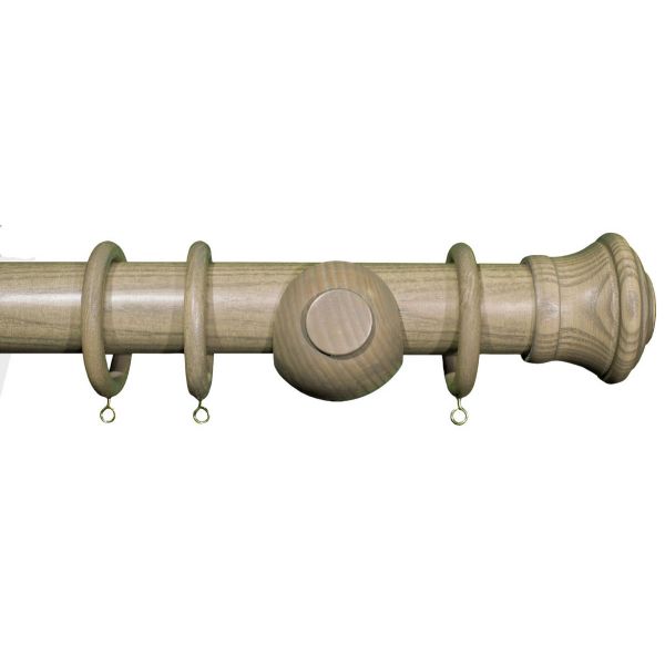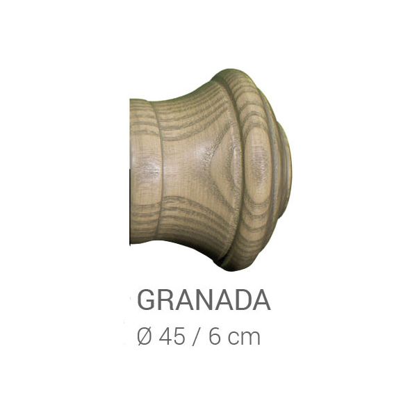 45 mm. Barra para cortina de madera de fresno color olivo, soporte frente clásico terminal Granada
