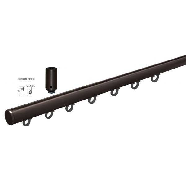Riel para cortinas, redondo manual muy decorativo de 20mm de diámetro, en color titanio mate. Kit completo