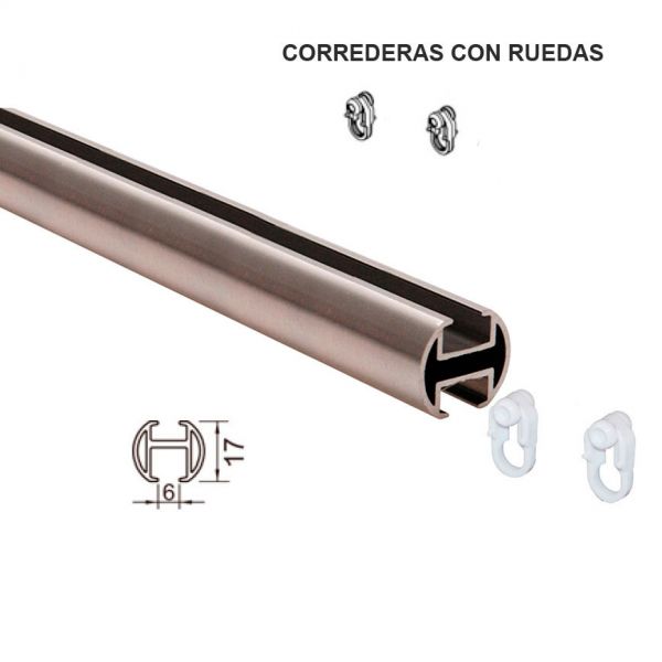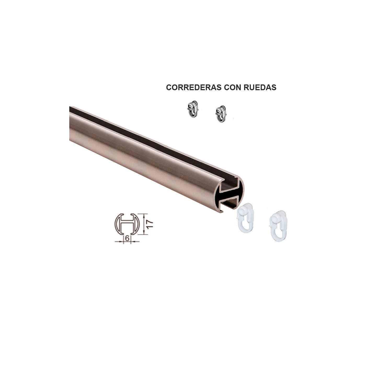 Kit completo riel de tubo abierto color níquel mate con correderas de rueda