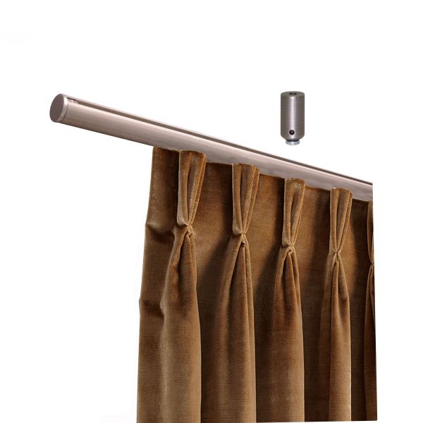 20mm Riel para cortina níquel mate, correderas rueda manual, soporte cilíndro a techo