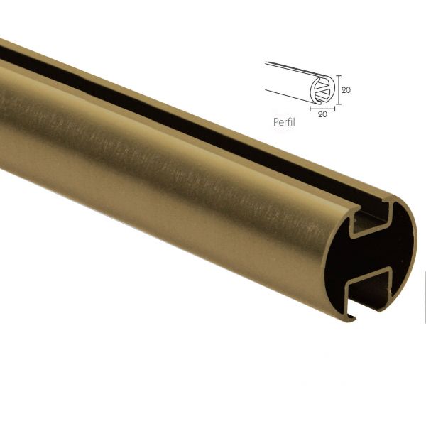 Perfil redondo de 20mm. de diámetro acabado en aluminio color níquel mate. Soportes para instalación en la pared.