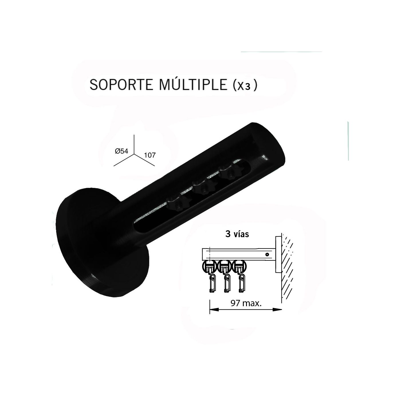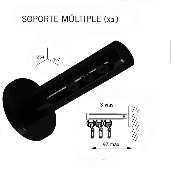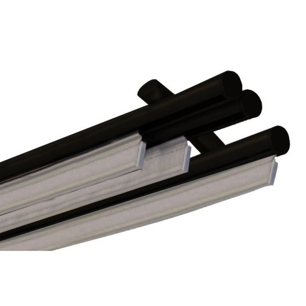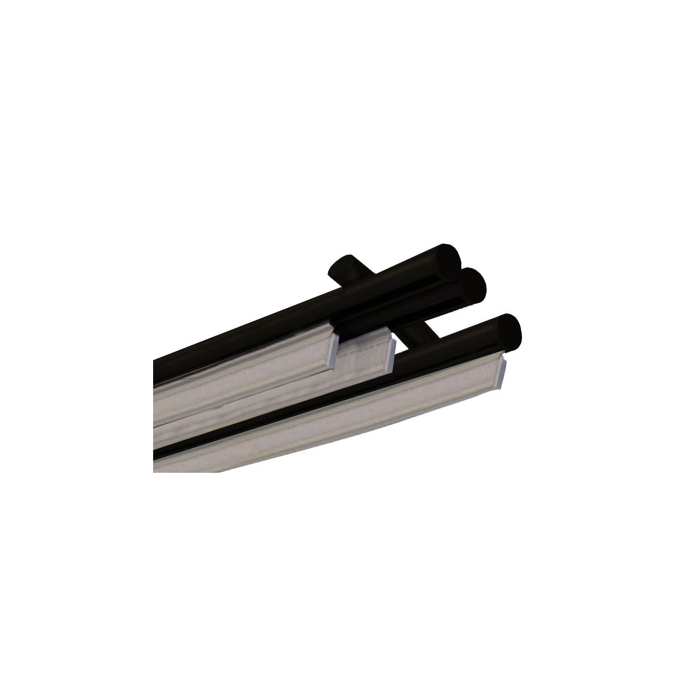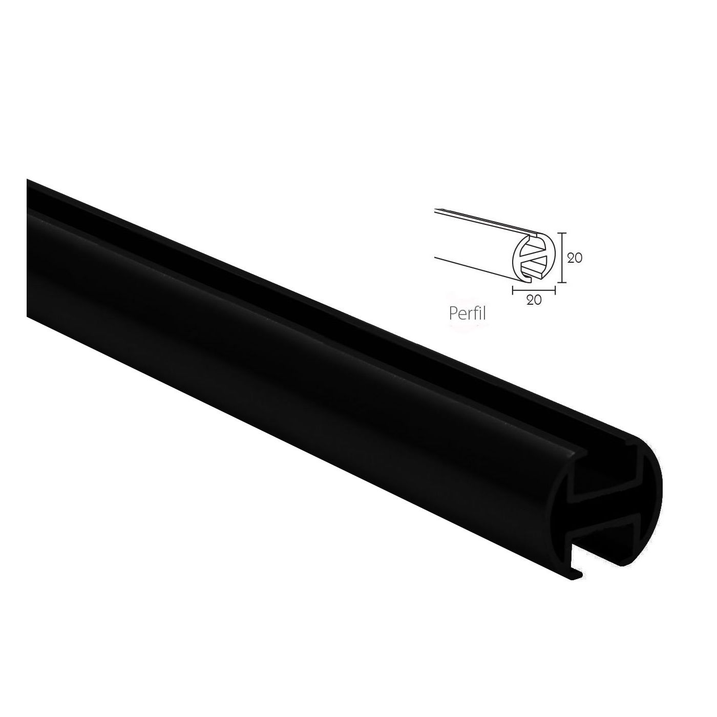 Perfil redondo de 20mm. de diámetro acabado en aluminio lacado negro. Soportes para instalación en la pared.