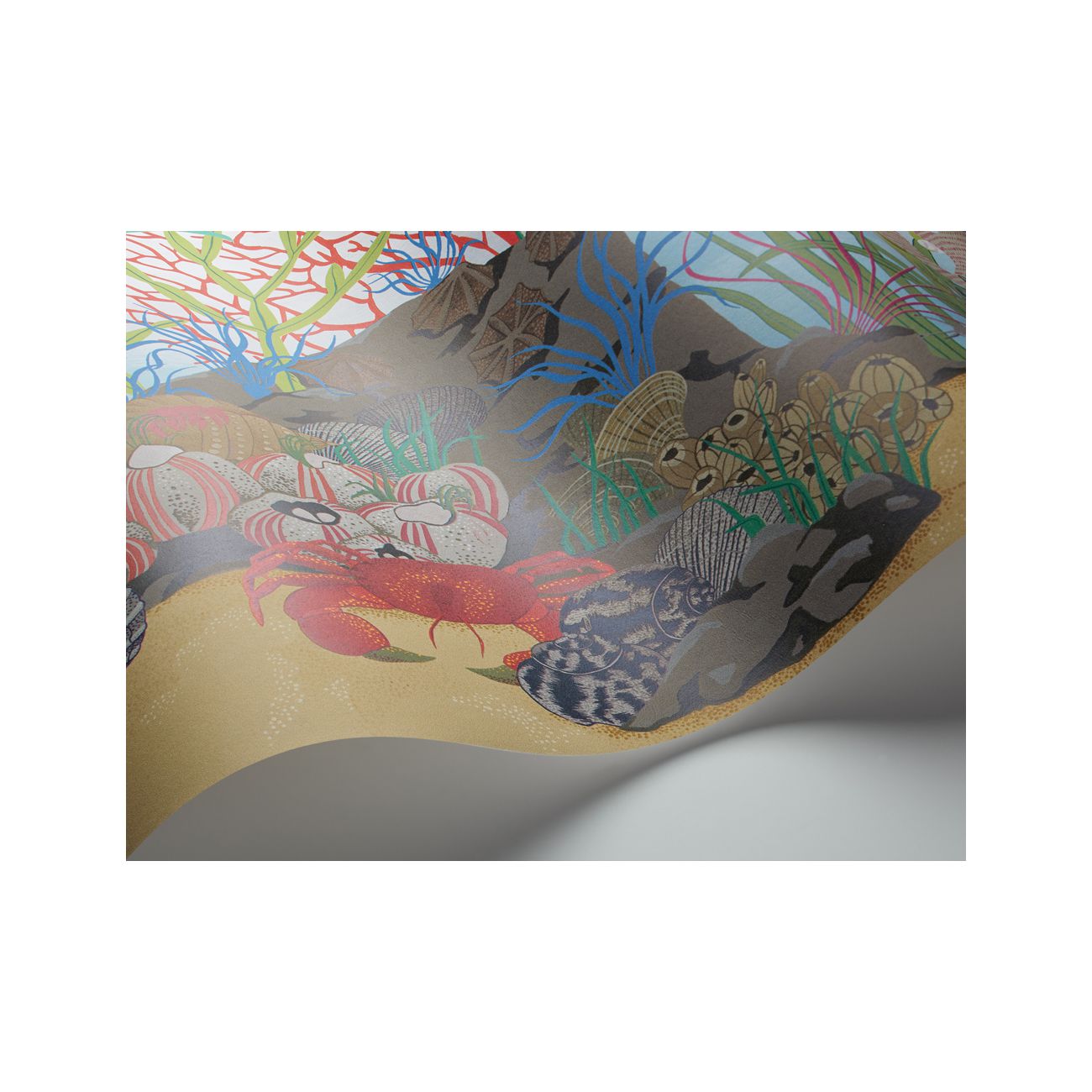 Compañía de crustáceos y conchas que se esconden entre extrañas y maravillosas plantas acuáticas y corales en una costa en algún lugar lejano.