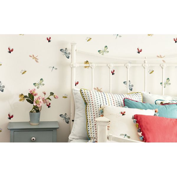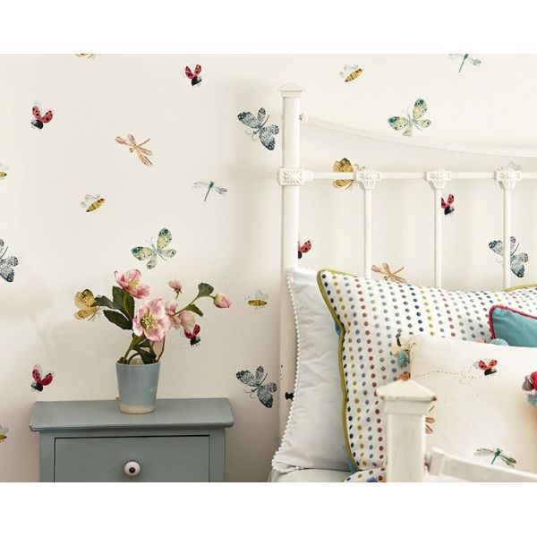 Una mezcla ingeniosa de mariposas aleteando, libélulas planeando, abejas ocupadas y mariquitas sonrientes. Esta combinación colorida de bichos estrafalarios tiene un aspecto precioso y alegre.