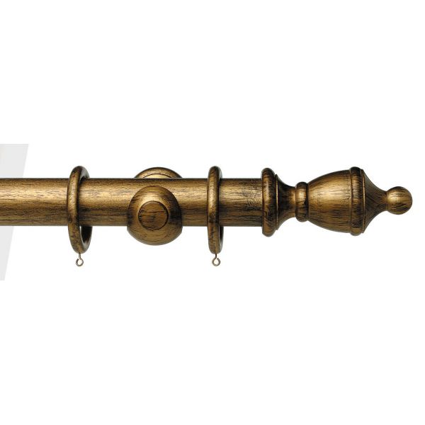 35 mm. Barra de madera para cortina ROYAL color oro viejo terminal TRADICIONAL